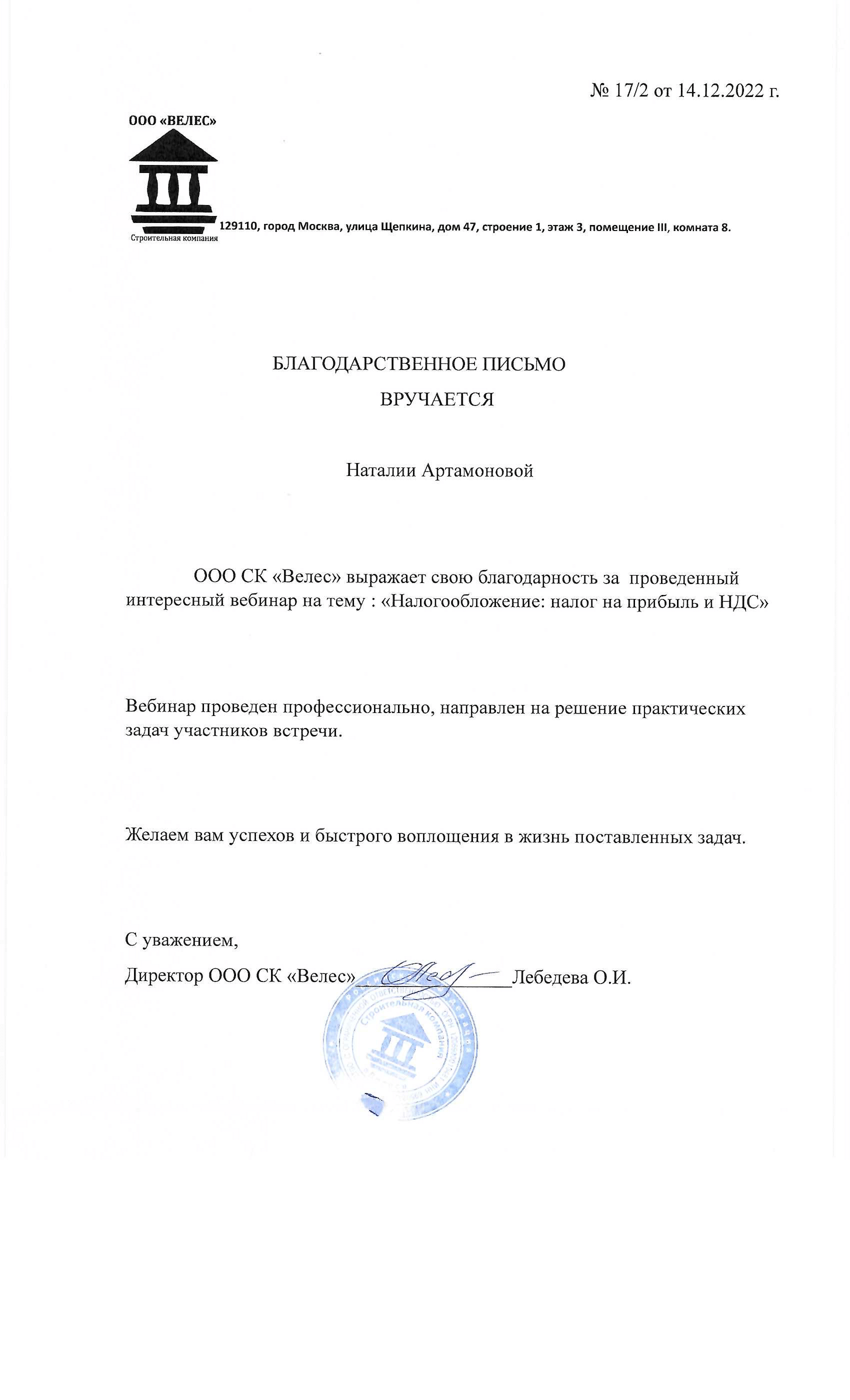 Надеемся на продолжение нашего сотрудничества и желаем вам успехов в достижении ваших целей в области налогового и бухгалтерского консалтинга.